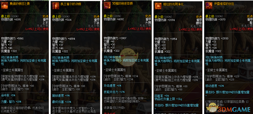 95板甲B可以通过90B升级,单件的属性加了属强相对而言比90B板甲的属性提升了一大截,所以板甲升级为95级史诗后的提升也算是很大的。而且套装属性附加的属强白字,属强高收益就高。