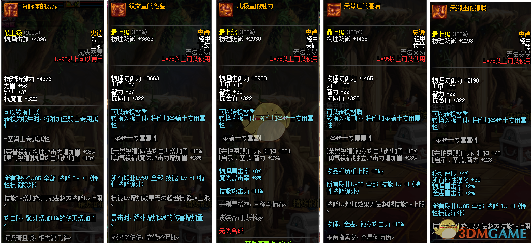 95重甲B可以通过90B升级,单件属性也是不错,但是套装属性就真的也是弟中弟,就是加力智和三攻?跟皮甲真是半斤八两。说实在的如果现在还没升级B套的玩家,还是别升90重甲B了,真是魔岩石丢大海。
