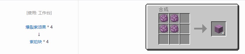 用途:可用于合成紫珀装饰方块,也可用于复制尖塔盔甲纹饰锻造模板。