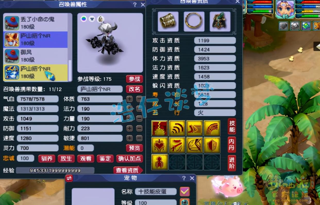 9技能凝光炼彩童子蛇胚,这只就比较稀有了,因为造型好看技能完美的蛇胚太难得了。