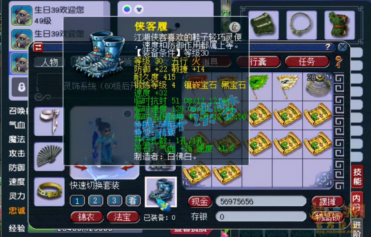 30级精致破甲术鞋子,打了4锻黑宝石。