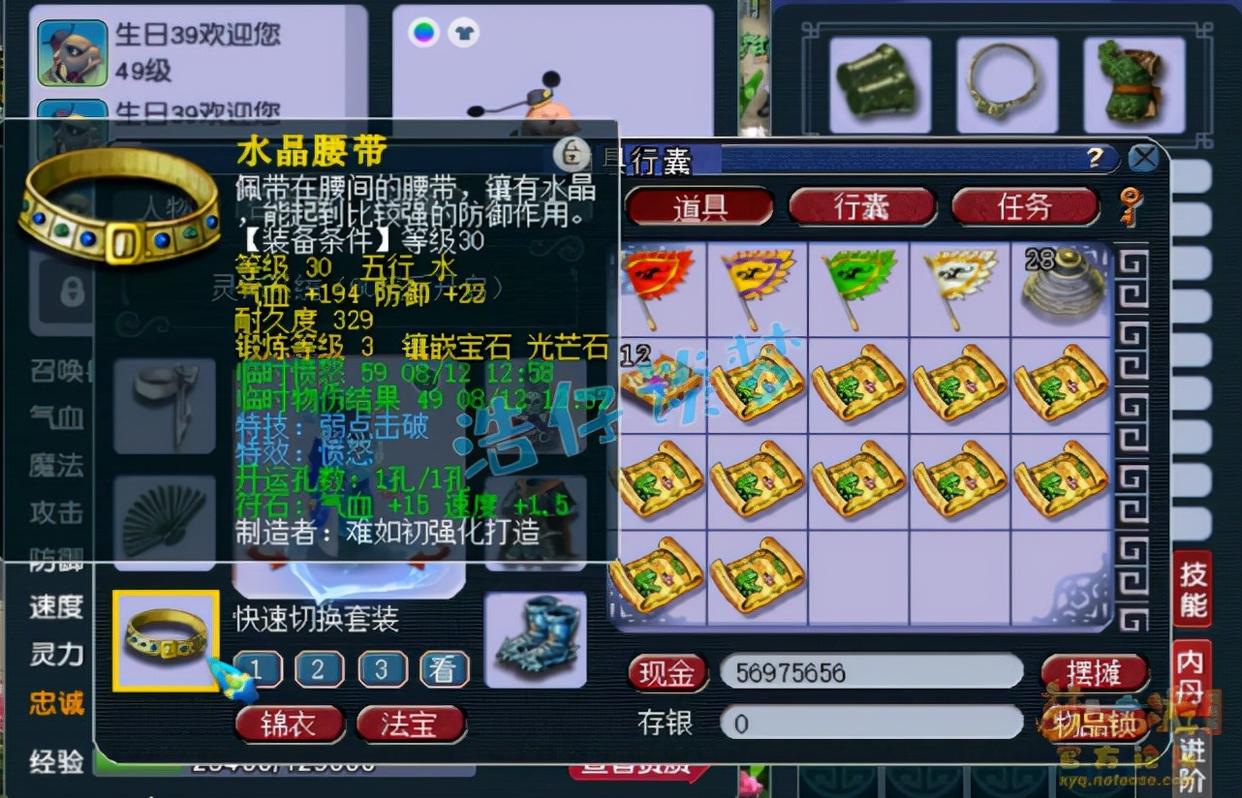30级愤怒弱点击破腰带,打了3锻光芒石。