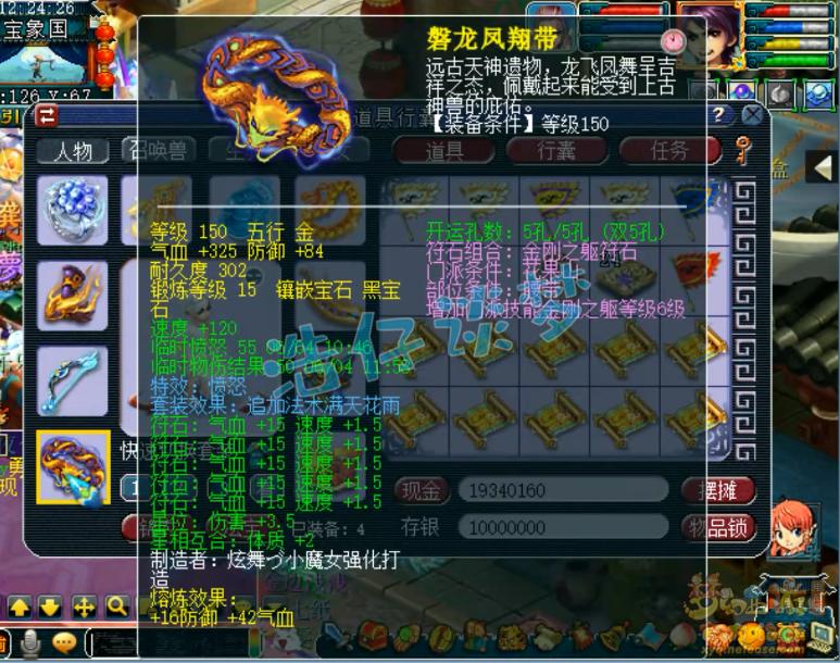 150级愤怒满天花雨套腰带,同样打了15锻黑宝石。