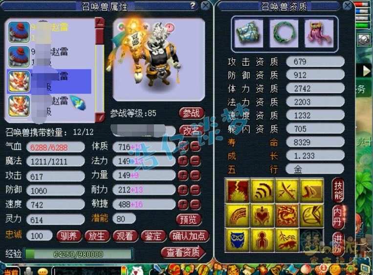 11技能龙魂凝光炼彩日游神,技能稍多一点,只是资质可能要再养两年。