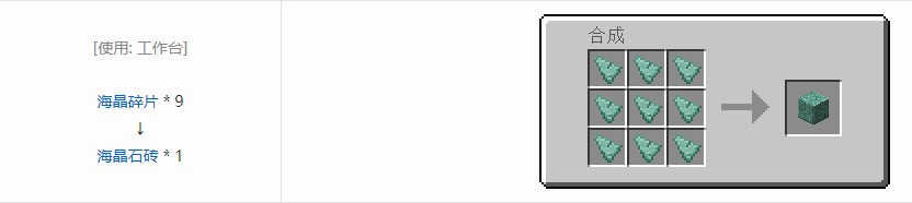 海晶石砖也可用于合成海晶石砖装饰方块。