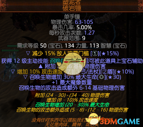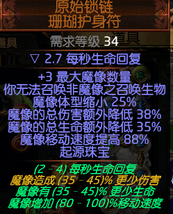 召唤物生命尽量满roll,魔像生命越高,秒回越高