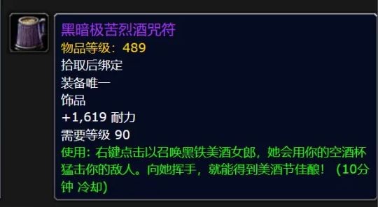 魔兽世界国服开放巫妖王之怒版本美酒节的同时,暴雪也开启了熊猫人之谜版本的美酒节,还会上线几款新的装备饰品,那么有不少小伙伴好奇黑暗极苦烈酒咒符属性效果是什么下面就来告诉大家。