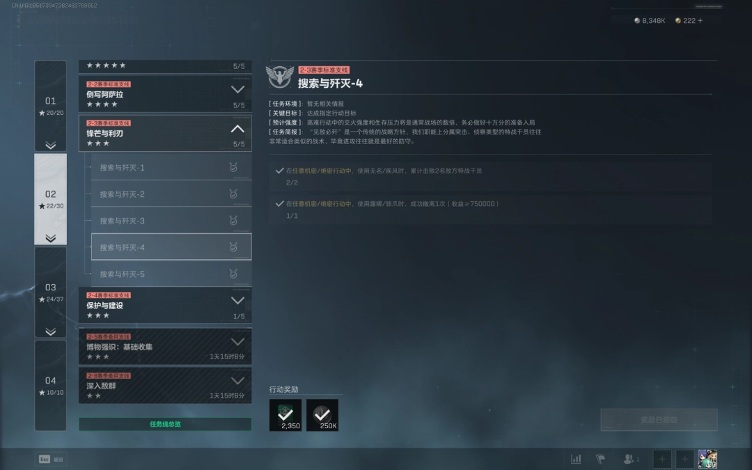 在任意机密/绝密行动中,使用无名/疾风时,累计击败2名敌方特战干员。