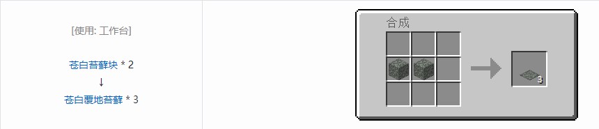 用途:苍白覆地苔藓会尝试在依附的方块向上延伸,最多延伸两格,使用骨粉会向所有相邻方块的对应面延伸。