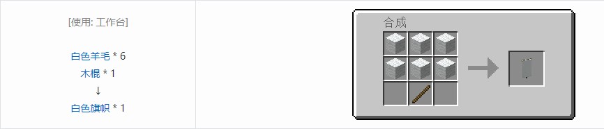 有图案的旗帜与另一底色相同的空白旗帜无序合成时(此处“底色”指最初合成旗帜时使用的羊毛的颜色),可以把图案直接复制到空白旗帜上,无需消耗染料。