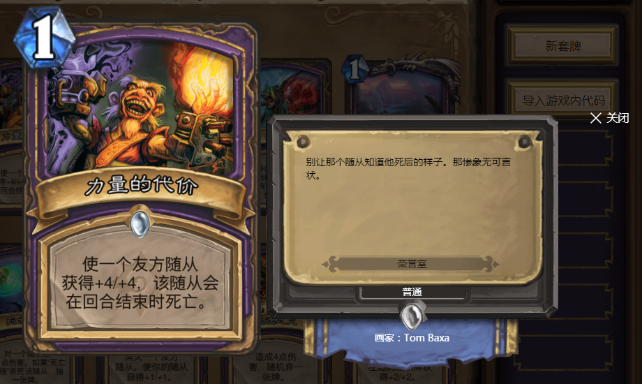 1费加4加4本来就堪称BUG一般的存在,虽然在使用过后随从会被消灭,但是这效果也太逆天了罢。1费加4加4,让一个随从的斩杀能力大大增强,何况如果遇到部分亡语随从,比如大家所熟知的蜘蛛蛋,魔暴龙蛋等,那么性质就完全不一样了。所以这张卡牌进入荣誉教室,似乎也非常合理。现在我们再也听不到那句“你总不能双力代把我秒了吧”。