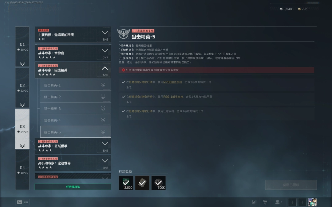4、任务奖励:经验x2000、特种制式券x1、哈夫币x300000