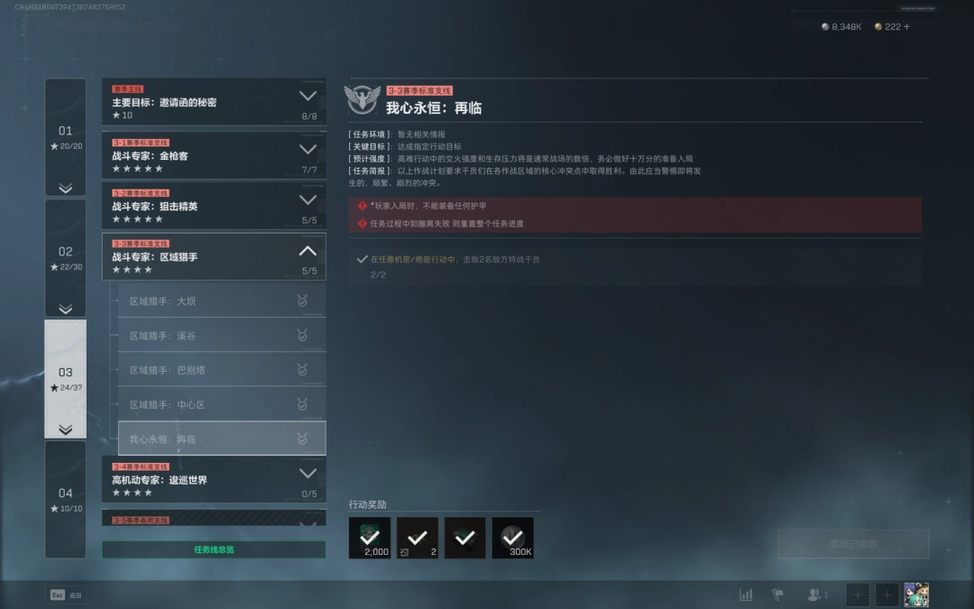 1、任务目标:在任意机密/绝密行动中,击败2名敌方特战干员。