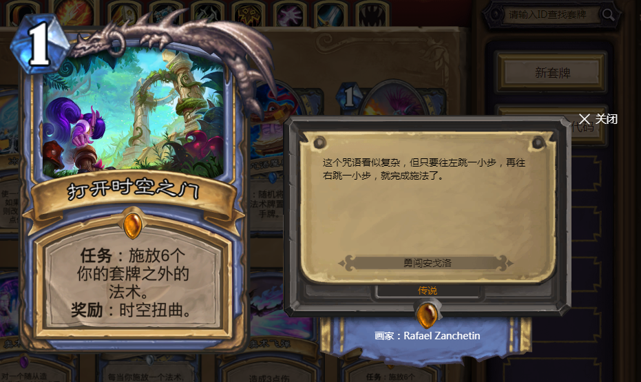 名副其实在一回合内实现斩杀。其最终目标就是开启时空传送门,不断召唤巫师学徒,再将安东尼召唤到场上,最后实现0费火球术。再搭配安东尼的机制,每当施放一个法术就能将一张火球术加入到手中。所以在理论上,基本上对方一定会在一回合内将你轰炸成渣。个人跟任务法偶然对抗过两次,结果两次都输掉。不过。从他不那么热门的情况或许也能看出,这套OTK玩法,实际上并没有那么受到欢迎。