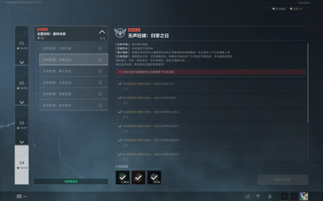 在任意机密/绝密行动中,击败1名阿萨拉盾兵。