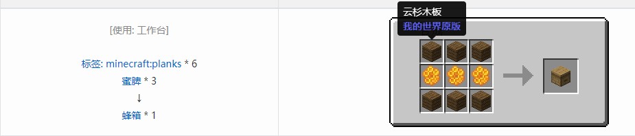 蜂巢的可合成版本,由蜜脾和木板合成。其中可容纳最多3只蜜蜂。