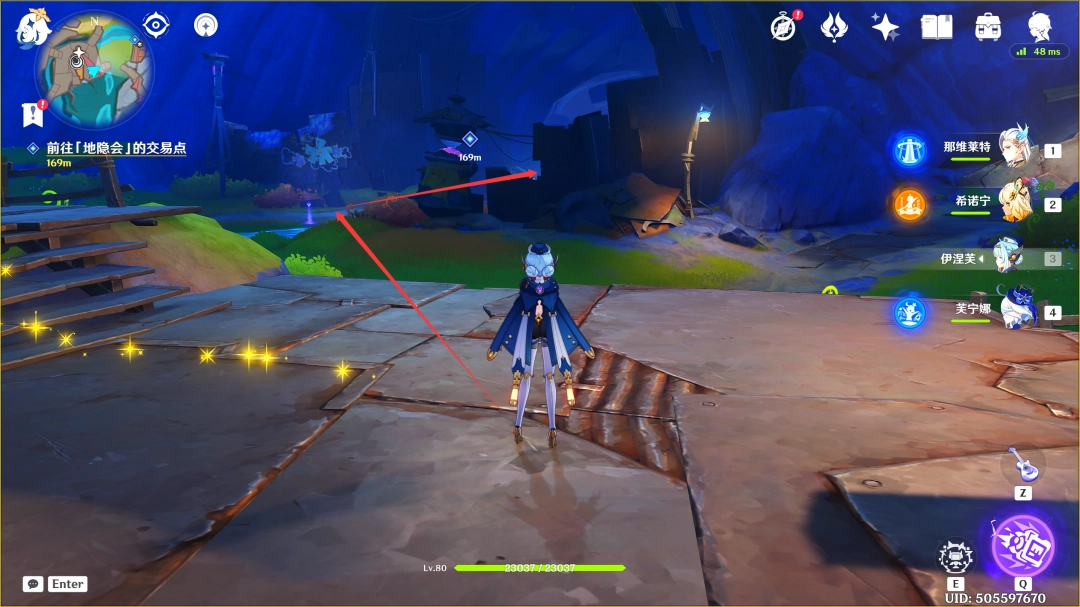 这里我们传送到「叮铃哐啷蛋卷工坊」东北方的锚点,来到下图位置