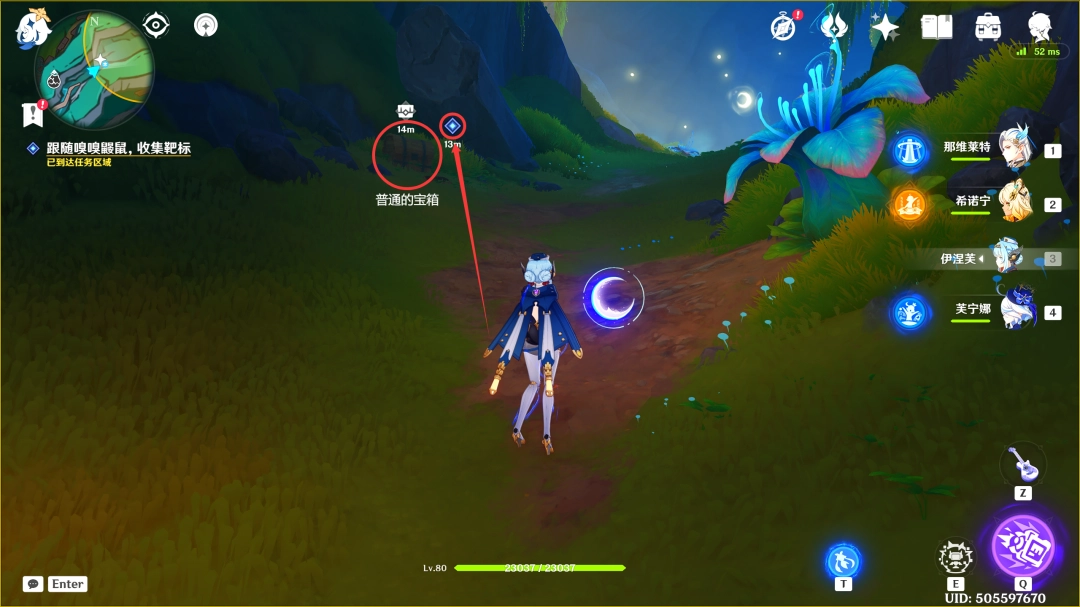 跟随嗅嗅鼹鼠前进,等待它挖掘后,我们获得一个普通的宝箱