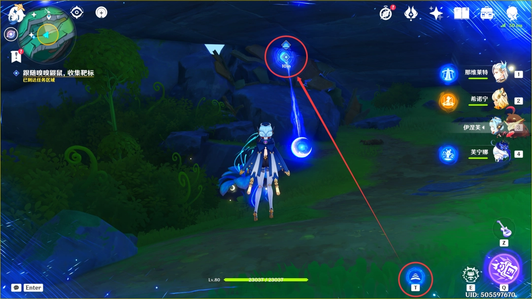 过完剧情后,我们跟随嗅嗅鼹鼠(这里过去拾取靶标即可)