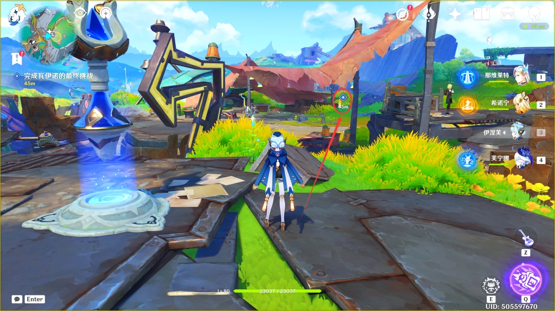 这里我们传送到「那夏镇」西北方的锚点,来到下图位置(推荐优先完成「空月之歌·第一幕」,此传送锚点可在任务路途上顺手解锁)