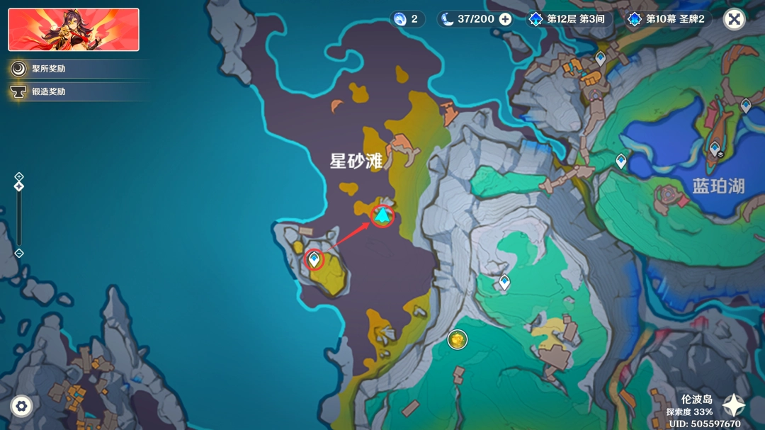 这里我们传送到「星砂滩」的传送锚点,来到下图位置