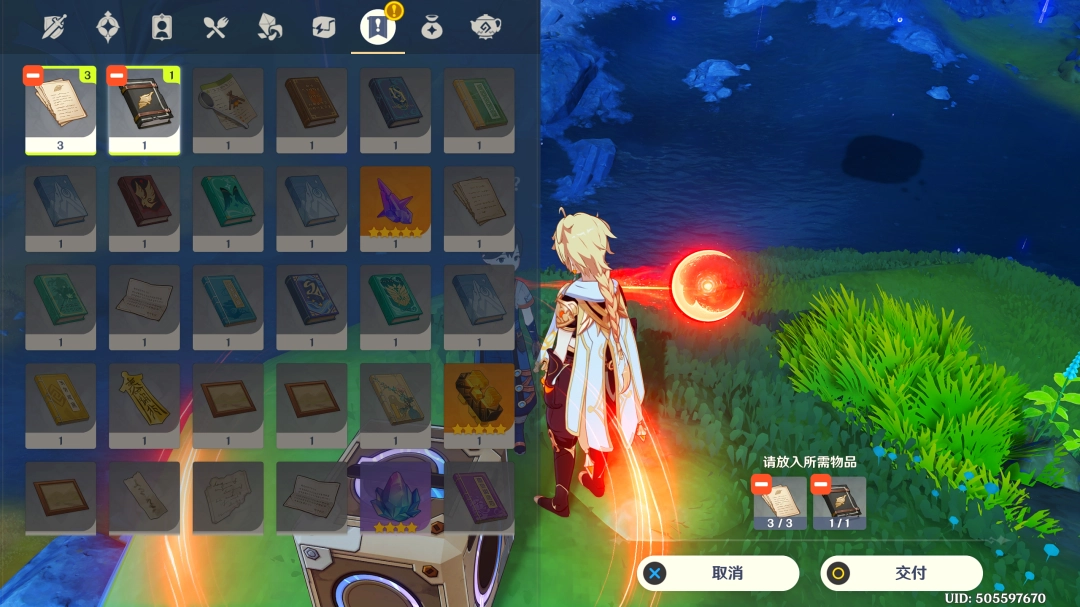 来到此处后,我们与这里的光团交互,获得一个「印有海螺纹样的笔记本」