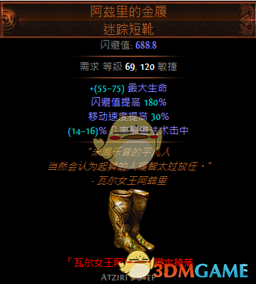 推荐暗金鞋子:阿兹里的金履,迷踪短靴(高血,30%跑速,16%法术Dodge,无可取代)