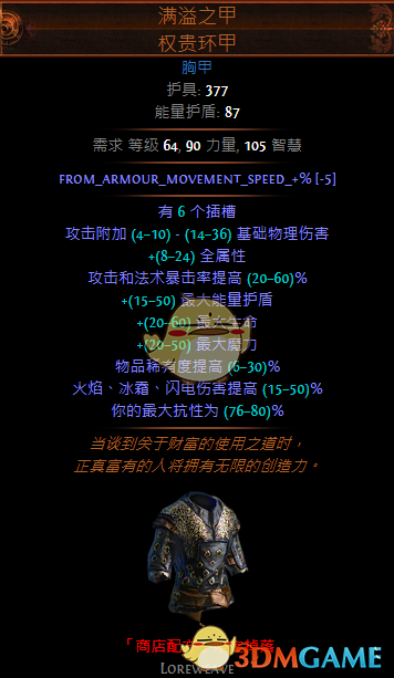推荐暗金胸甲:满溢之甲,权贵之甲(提供80点最大抗性,暴击,元素伤害)