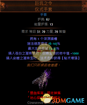推荐暗金手套:巨坑之令,仪式手套(免费的秘术增强)