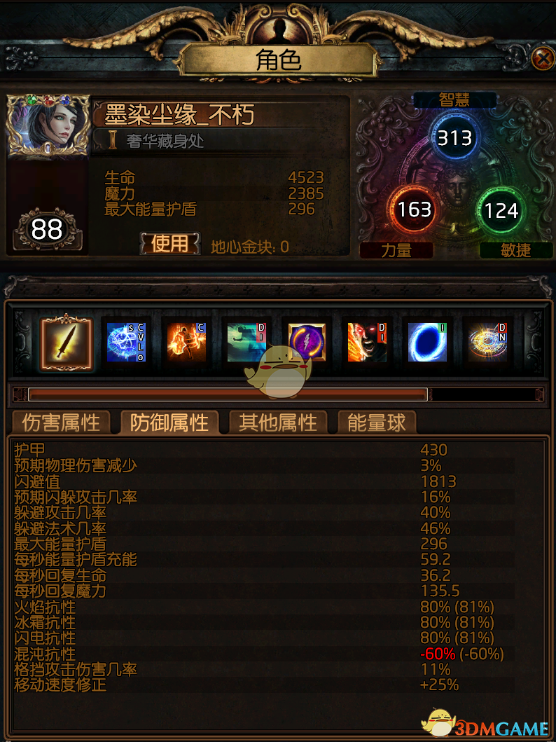 且4500血/2400蓝基本保证不被一下秒,更遑论还有40%/46%的双闪,16%闪避及80%全抗加持