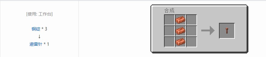若避雷针在雷雨天被带有引雷附魔的三叉戟击中则会立即产生一道闪电,且无需其他实体参与。