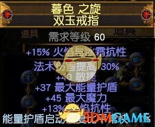 戒指2,最好是火焰冰霜抗性底子的双玉戒指或月光石戒指,词缀重要性顺序: