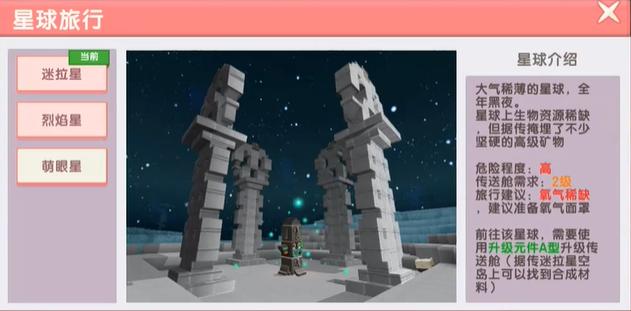 迷你世界去萌眼星球方法:1、萌眼星需要打开任意地图找到这里的星站;2、然后在迷拉星制作升级元件a型,将你的星站升级到二级传送仓;3、升级二级传送仓;;升级元件a型制作材料;之后进入其中,打开星球旅行功能,选择萌眼星进行传送。