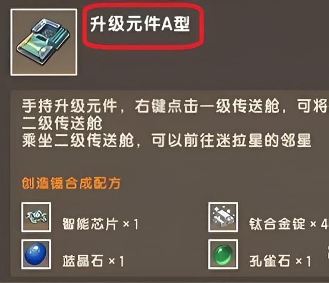然后在迷拉星制作升级元件a型,将你的星站升级到二级传送仓。(以及升级的玩家不须要升级)