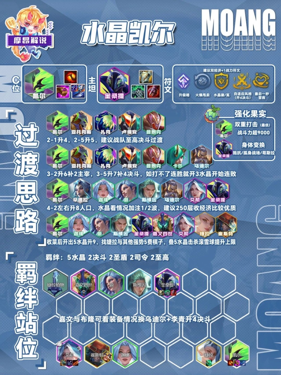 云顶之弈S15版本天下无双格斗大赛,欢迎来到天下无双格斗大赛!打造你的梦之队,一路冲击巅峰,那么有不少小伙伴好奇云顶之弈s15有什么强力阵容,下面就给大家带来s15水晶凯尔阵容推荐。
