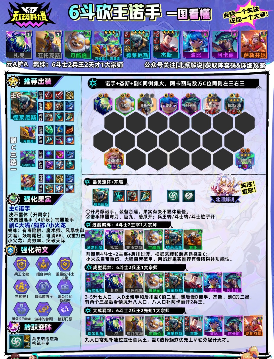 云顶之弈S15版本天下无双格斗大赛,欢迎来到天下无双格斗大赛!打造你的梦之队,一路冲击巅峰,那么有不少小伙伴好奇云顶之弈s15有什么强力阵容,下面就给大家带来s15砍王诺手阵容推荐。