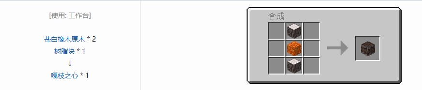 嘎枝之心的两端必须为朝向正确(与嘎枝之心自身朝向一致)的苍白橡木原木、苍白橡木、去皮苍白橡木原木或去皮苍白橡木,否则嘎枝之心将会变为失活状态;