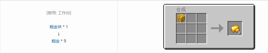 用途:可用于在熔炉中烧制成金锭,也可用于合成粗金块。