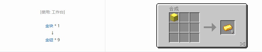 2、合成金质的装备和金块、时钟、金质食物、充能铁轨、金粒和轻质测重压力板;