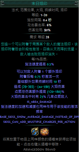 特点:低频高伤,较高伤害效用(90%),暴击几率较高(6%),相对一般火焰技能,有非常高的燃烧伤害。