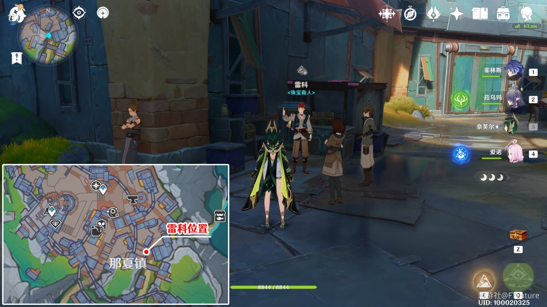 17. 卡乌妮娅:位于图示位置,冒险家协会西侧空地上,会在附近小范围内来回走动。