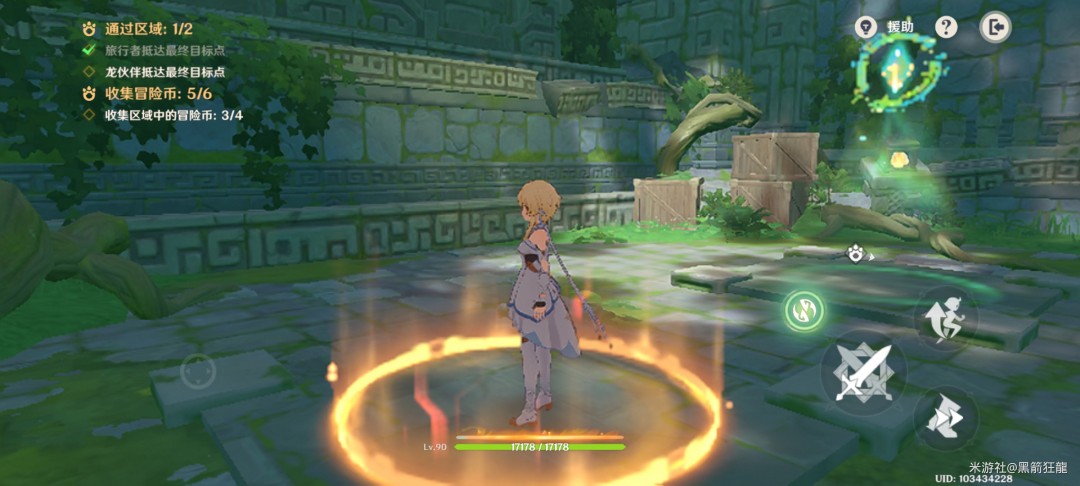切换旅行者,关闭射线组件并开门,拿旁边的第五个金币。
