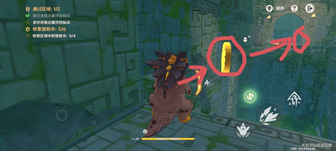 切换龙,上墙拿第三个金币,下来攻击橙色按钮。