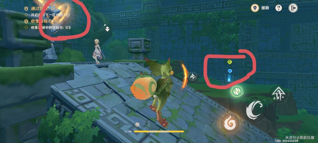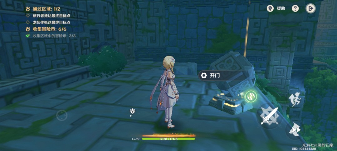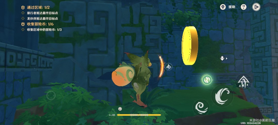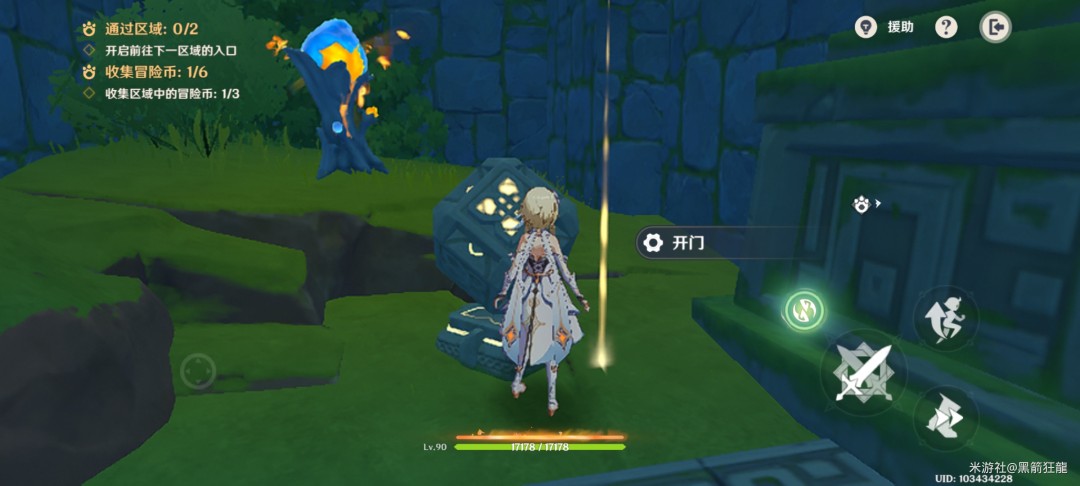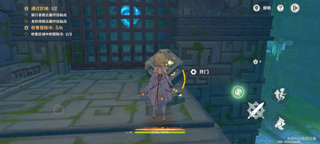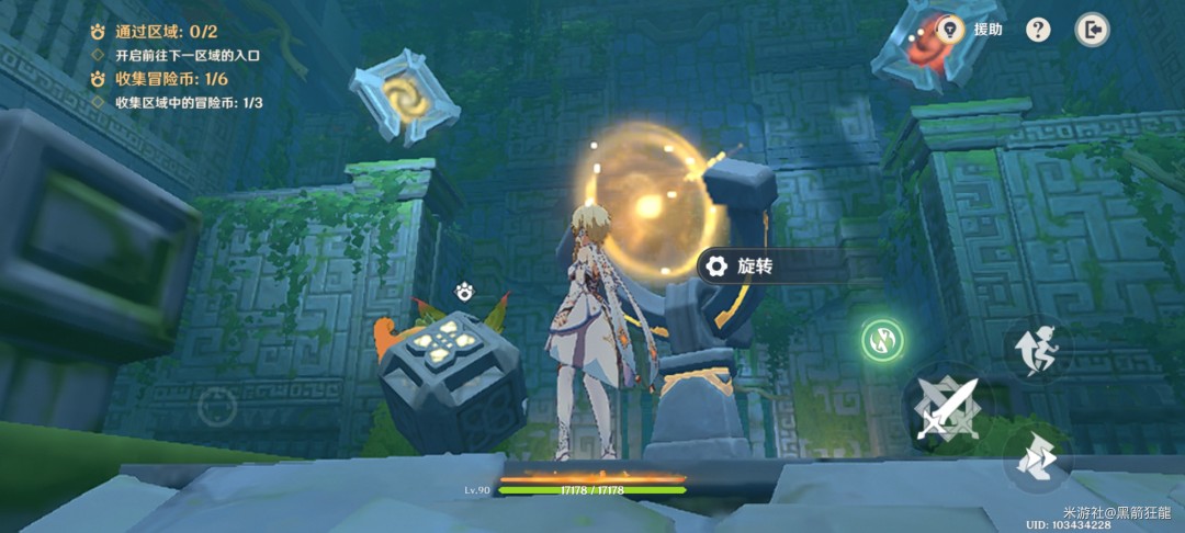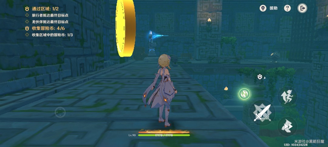 切换旅行者,右边楼梯上去拿第四个金币,并启动机关。