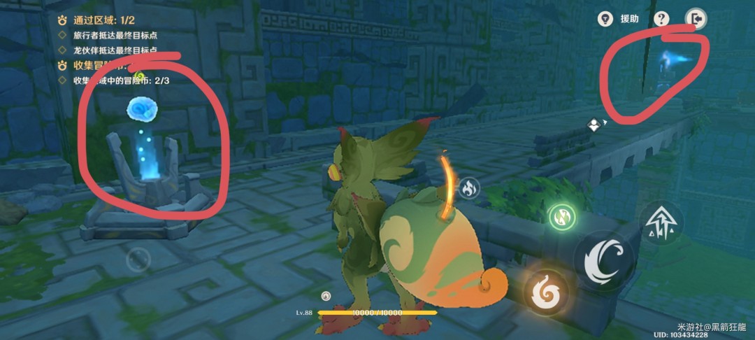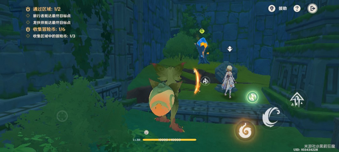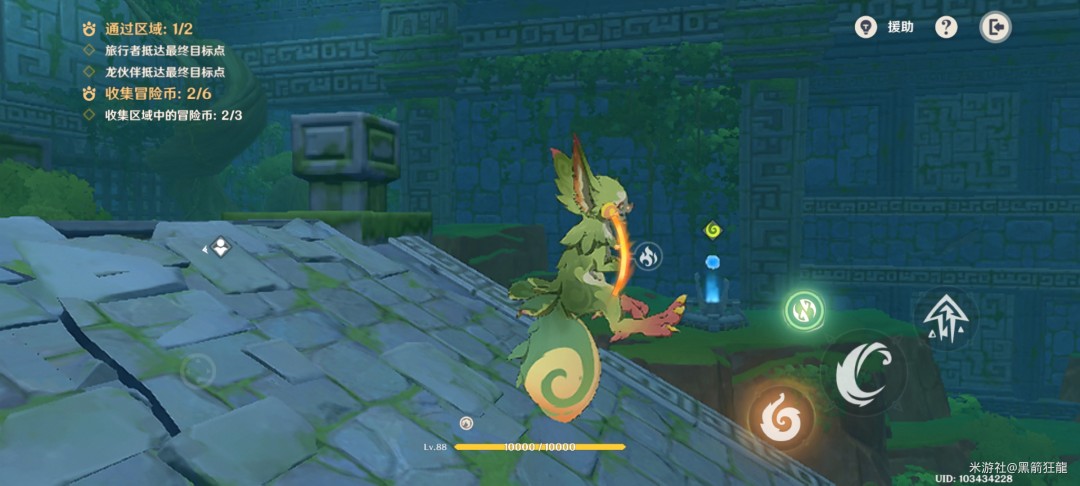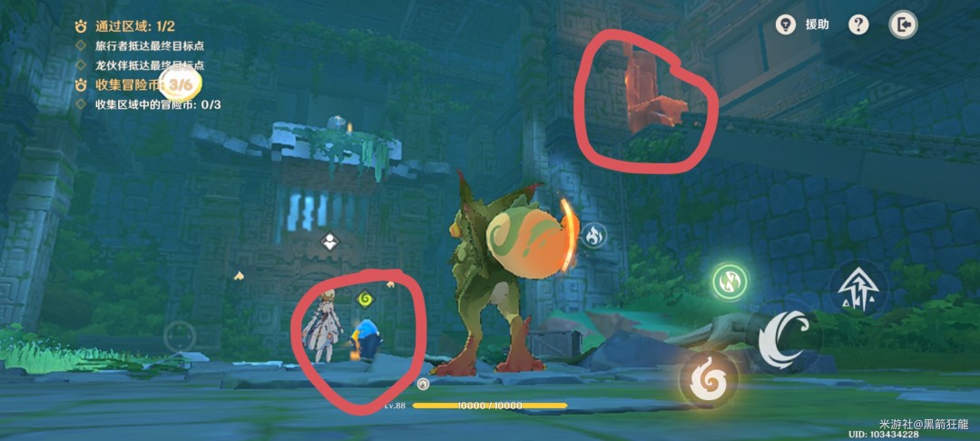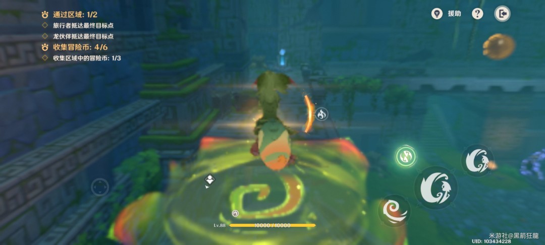 龙舔一下绿色的“6”,并站在上面,切换旅行者走过绿色平台。