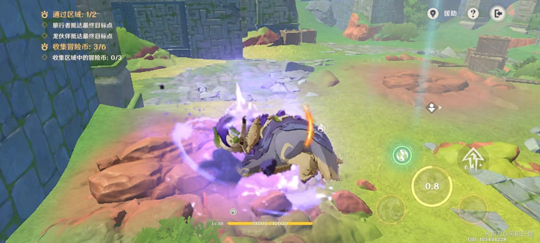 过关方法:旅行者从左边飞上去拿第一枚金币。