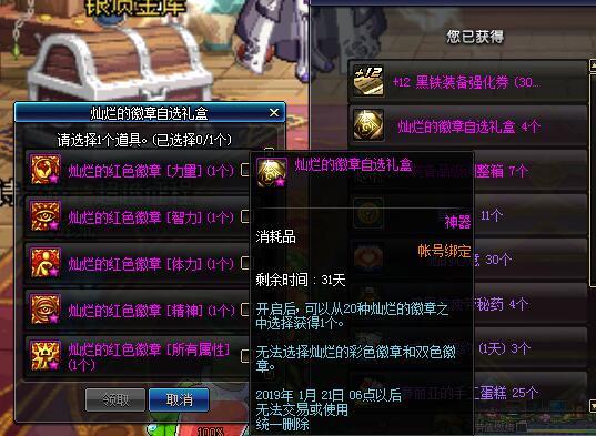 魔盒活动新增华丽徽章和灿烂徽章自选礼盒,持续一个月的时间,1月21日结束,这个时间点很有可能就是指95版本上线的具体时间了。