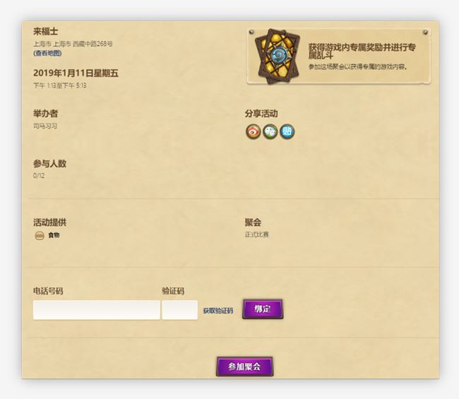 申办炉边聚会的组织需提供活动场所,场地需可容纳前来参加活动的所有炉石玩家