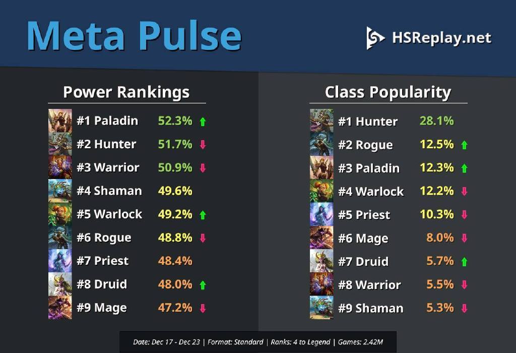 以上就是为大家带来的最新的天梯上的情报。总结一句话就是,猎人在高分段有着消退之势,但是另外一边骑士依然位居榜首。而笔者在这里也为大家带来了相关卡组的推荐。所以不知道各位读者对此本文有何看法呢?