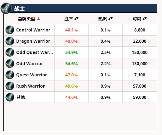 目前天梯胜率第一位的是骑士,第二位是盗贼第三是战士,骑士能从第三一跃至第一还是依仗着改版之后的奇数骑和天启骑了。